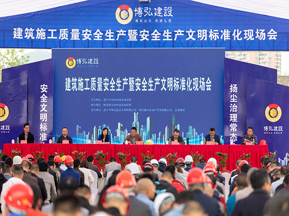 金域香江業(yè)界觀(guān)摩質(zhì)量安全再樹(shù)標(biāo)桿——遂寧市建筑工程質(zhì)量安全標(biāo)準(zhǔn)化現(xiàn)場(chǎng)觀(guān)摩會(huì)在金域香江項(xiàng)目舉行4月11日,由遂寧市住房和城鄉(xiāng)建設(shè)局主辦,射洪縣住房和城鄉(xiāng)建設(shè)局協(xié)辦的“2019年全市建筑施工質(zhì)量安全生產(chǎn)暨安全生產(chǎn)文明施工標(biāo)準(zhǔn)化觀(guān)摩會(huì)”,由射洪馨寧公司開(kāi)發(fā)、遂寧市博弘建設(shè)工程有限公司(以下簡(jiǎn)稱(chēng)博弘建司)承建的“正黃·金域香江...